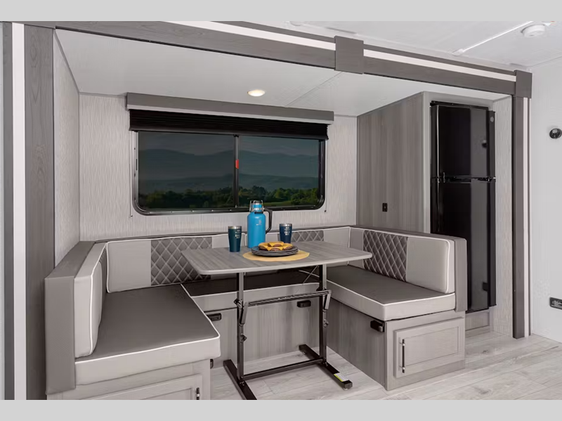 The sharp automotive-inspired exterior design and light, airy interiors will set the stage for carefree camping. Full bath and kitchen amenities comes standard, along with cozy sleeping space, and plenty of storage space for your belongings. Some of the exclusive features that Keystone offers are the color-coded unified wiring, the Tuf-Lok thermoplastic duct joiners, the in-floor heating ducts, and I-bean frame with stamped cross-members and outriggers for added support.