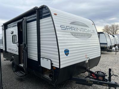 With any Springdale Classic Mini travel trailer by Keystone, you will enjoy lightweight towing thanks to their single-axle! You'll find the XL entry assist handle will make entering and exiting your unit easier than ever, and the power awning will provide protection from the sun as you relax in your camp chairs outside. Each model includes blackout night shades, solid wood cabinet doors and drawers, a shower skylight for more standing room, plus many more interior comforts. There is also a 5,000 BTU sidewall A/C and 20K BTU furnace to keep you comfortable, plus a Girard tankless water heater for endless hot showers!