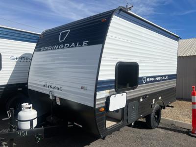 The Springdale Mini by Keystone are conventionally built, single-axle travel trailers allowing you to camp at an affordable price-point and easily tow to all the campgrounds on your wish list!